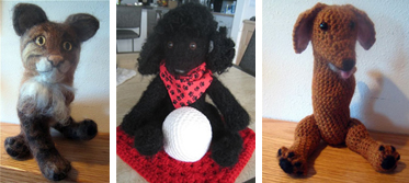 The hand-crocheted/felted Henry, Dolly and Tink dolls are cuddly one-of-a-kind “pets” that children can hold and love. They are available exclusively in the Henry’s World Store. |